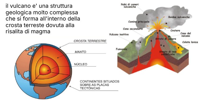 il vulcano e' una struttura geologica molto complessa che si forma all'interno della crosta terreste dovuta alla risalita di magma