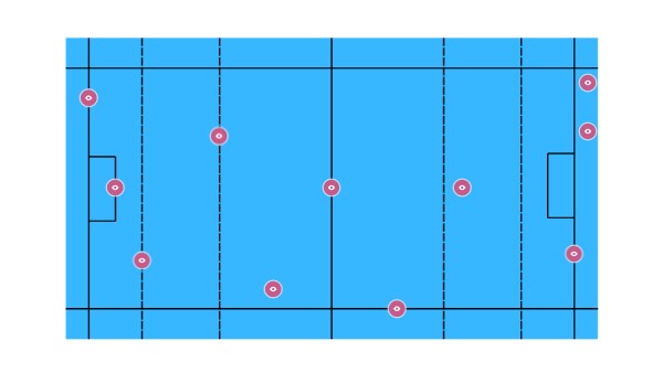 A red-marked line 2 meters from the goal; attacking players cannot remain inside this area unless they have possession of the ball.