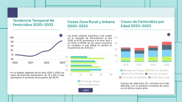 En un análisis realizado de los años 2020 y 2023, los casos de femicidio aumentaron de 73 a 102, lo que representa un aumento preocupante del 39,7%.