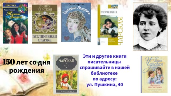 Эти и другие книги писательницы спрашивайте в нашей библиотеке по адресу: ул. Пушкина, 40