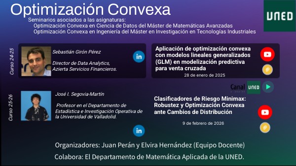 Seminarios asociados a las asignaturas: Optimización Convexa en Ciencia de Datos del Máster de Matemáticas Avanzadas Optimización Convexa en Ingeniería del Máster en Investigación en Tecnologías Industriales