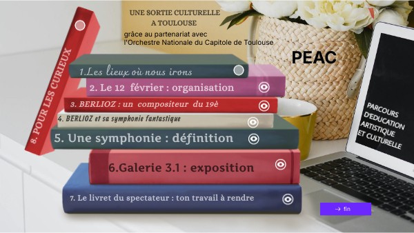 il est attendu Un soin apporté au carnet distribué. Des informations apportées Des illustrations, des croquis, des photos ou tout élément visuel qui pourraient agréémenter de manière judicieuse le carnet. l'expression de votre ressenti personnel - à l'écoute de l'oeuvre dans son intégralité - la découverte de l'orchestre du capitole - à la découverte des oeuvres plastiques - la sortie en elle même dans sa globalité N'hésitez pas à poser des questions à l'équipe encadrante pendant la journée afin de gagner du temps à la maison pour la réalisation de ce travail