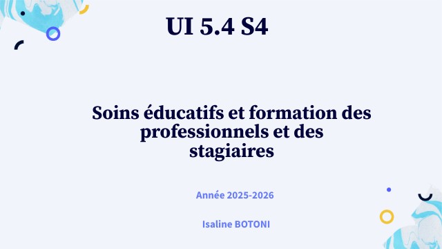 Semestre 4 UE 3.5 Encadrement de professionnels de soins UE 4.6 Soins éducatifs et préventifs UI 5.4 Soins éducatifs et formation des professionnels et des stagiaires