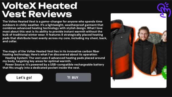 The Voltex Heated Vest is a game-changer for anyone who spends time outdoors in chilly weather. It’s a lightweight, weatherproof garment that combines advanced heating technology with stylish design. What I love most about this vest is its ability to provide instant warmth without the bulk of traditional winter wear. It features 8 strategically placed heating pads that distribute heat evenly across my core, including my chest, back, and collar. The magic of the Voltex Heated Vest lies in its innovative carbon fiber heating technology. Here’s what I’ve discovered about its operation: Heating System: The vest uses 8 advanced heating pads placed around my body, targeting key areas for optimal warmth. Power Source: It’s powered by a USB-compatible rechargeable battery that fits snugly into a dedicated pocket inside the vest.