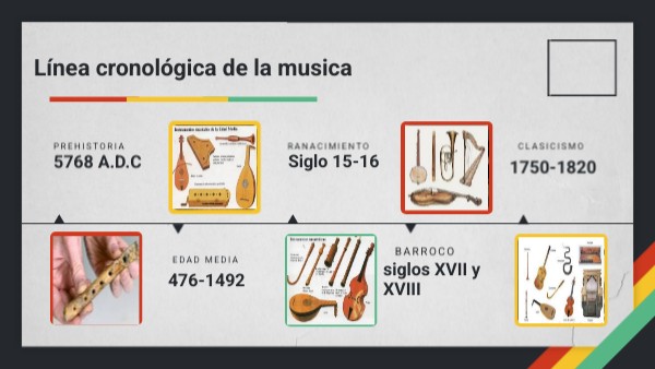Los principales instrumentos de la prehistoria son:Piedras, semillas, maderas, conchas, huesos, cuernos empleados como percusiones, silbatos, flautas, trompetas, lengüetas, arcos, bramaderas.