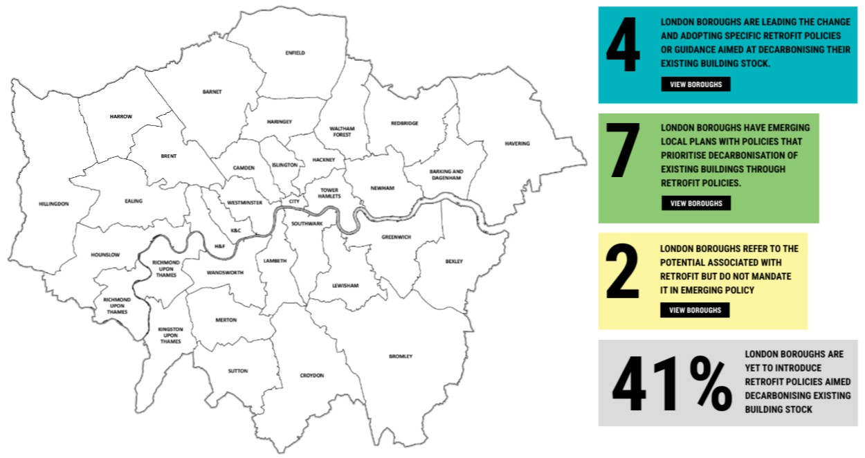 London boroughs refer to the potential associated with retrofit but do not mandate it in emerging policy