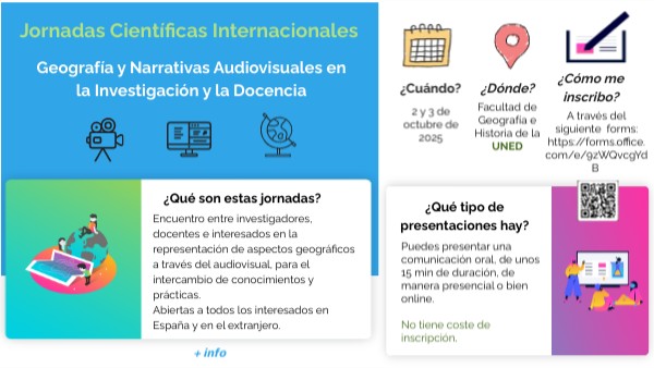 Encuentro entre investigadores, docentes e interesados en la representación de aspectos geográficos a través del audiovisual, para el intercambio de conocimientos y prácticas. Abiertas a todos los interesados en España y en el extranjero.