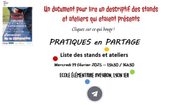 Un document pour lire un descriptif des stands et ateliers qui etaient présents