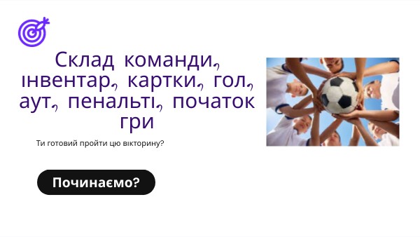 Склад команди, інвентар, картки, гол, аут, пенальті, початок гри