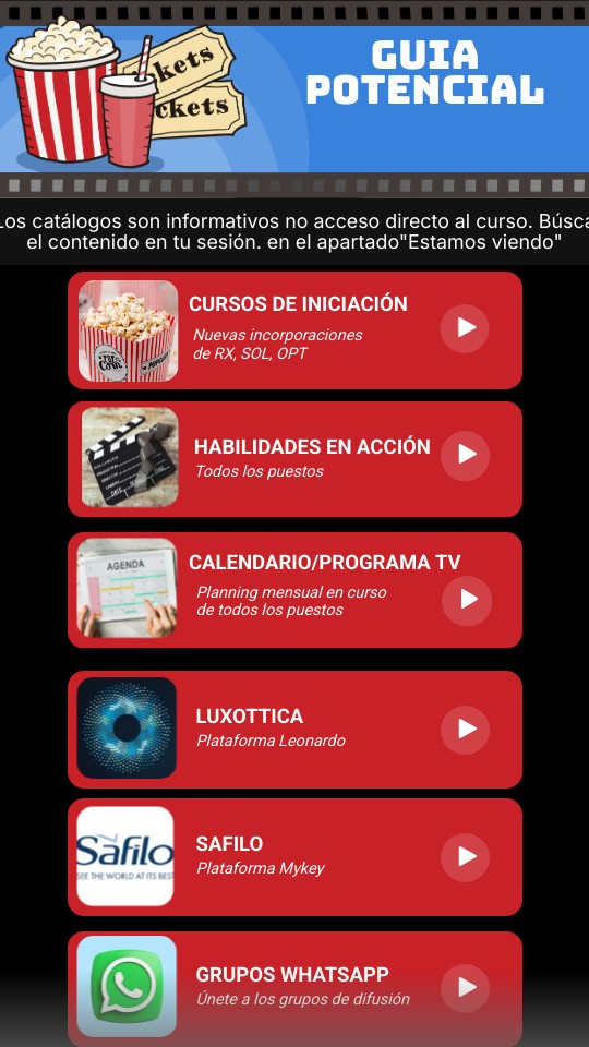 Los catálogos son informativos no acceso directo al curso. Búsca el contenido en tu sesión. en el apartado"Estamos viendo"