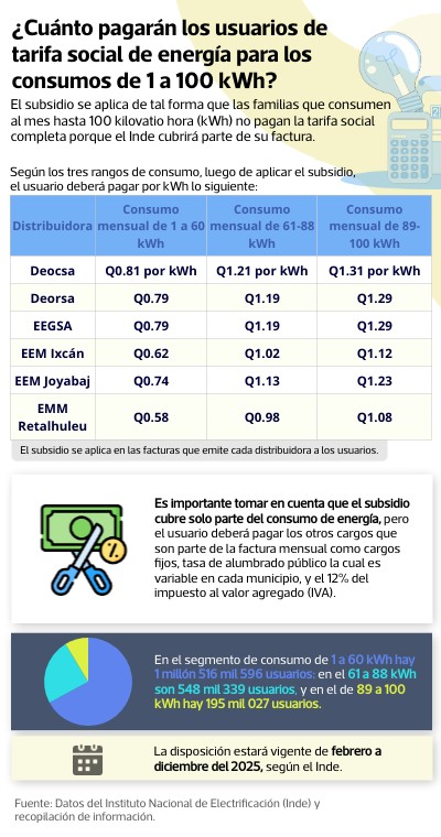 Es importante tomar en cuenta que el subsidio cubre solo parte del consumo de energía, pero el usuario deberá pagar los otros cargos que son parte de la factura mensual como cargos fijos, tasa de alumbrado público la cual es variable en cada municipio, y el 12% del impuesto al valor agregado (IVA).