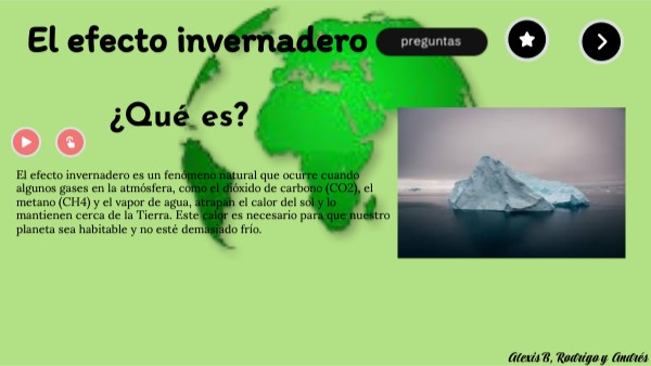 Ocurre cuando ciertos gases en la atmósfera de la Tierra atrapan el calor proveniente del sol, impidiendo que todo ese calor se escape de nuevo al espacio. Sin el efecto invernadero, la Tierra sería demasiado fría para sustentar la vida tal como la conocemos.