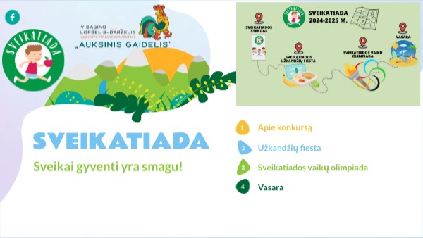 „Sveikatiada“ – tai ilgalaikė sveikos gyvensenos ugdymo programa, skirta vaikams ir jaunimui. Jos tikslas – skatinti sveiką mitybą, fizinį aktyvumą ir sąmoningą požiūrį į sveikatą per linksmą ir įtraukiantį ugdymą.
