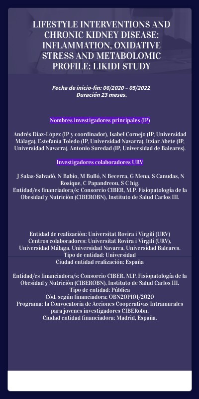 LIFESTYLE INTERVENTIONS AND CHRONIC KIDNEY DISEASE: INFLAMMATION, OXIDATIVE STRESS AND METABOLOMIC PROFILE: LIKIDI STUDY