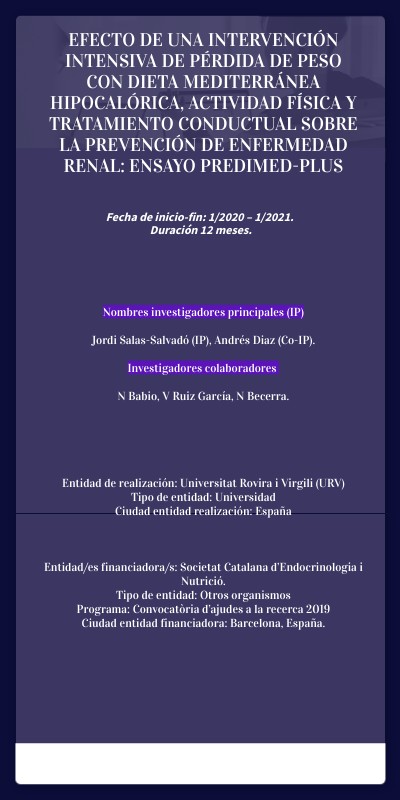 Nombres investigadores principales (IP)Jordi Salas-Salvadó (IP), Andrés Diaz (Co-IP). Investigadores colaboradores N Babio, V Ruiz García, N Becerra.
