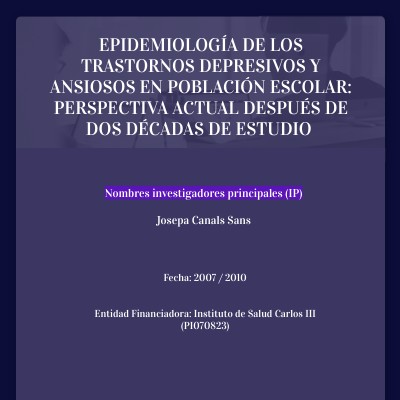 EPIDEMIOLOGÍA DE LOS TRASTORNOS DEPRESIVOS Y ANSIOSOS EN POBLACIÓN ESCOLAR: PERSPECTIVA ACTUAL DESPUÉS DE DOS DÉCADAS DE ESTUDIO