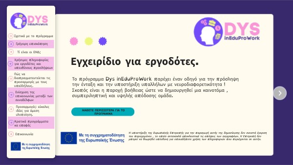 - Βιβλιαράκι βέλτιστων πρακτικών και τους εργαζομένουςΟ ιστότοπος του DysInEdu