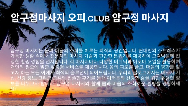 압구정마사지 몸과 마음을 위한 전문성과 편안함의 완벽한 조화.
