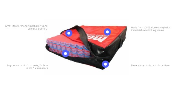 Bag can carry 10 x 2cm mats, 7 x 3cm mats, 5 x 4cm mats