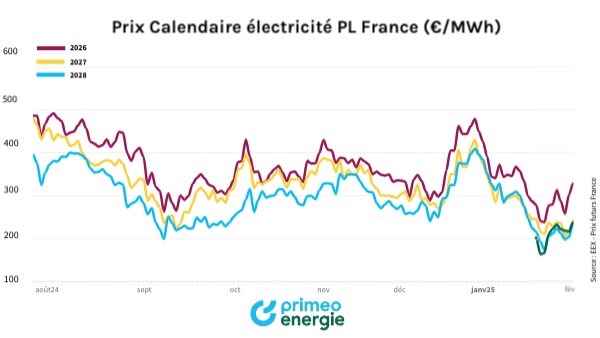 Prix Calendaire électricité PL France (€/MWh)