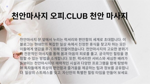 천안마사지 문 앞에서 누리는 럭셔리와 편안함의 세계로 초대합니다.