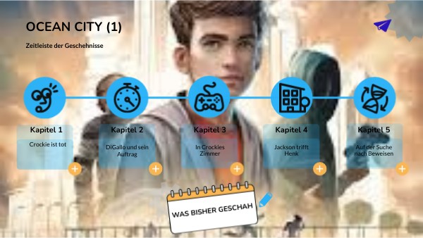Der nächste Schultag beginnt für Jackson und Henk mit der Mitteilung durch die Schulleiterin, dass Crockie tot ist. Allerdings wird offiziell eine Spätfolge seines Jahre zurückliegenden Unfalls als Todesursache bekannt gegeben, was die beiden Freund irritiert, denn sie kennen die wahre Todesursache durch die Schüsse der Kontrolleure und des anschließenden Sturz ins Wasser. Sie fragen sich, warum das verheimlicht wird. Der freiwerdende Platz in der Klasse wird durch die Schulleiterin Frida Ingaaden sofort durch eine neue Schülerin, Louise Clermont besetzt. Sie fordert Jackson und Henk auf, Lousie nach besten Möglichkeiten zu unterstützen, denn sie soll Crockies Schulprojekte fortführen, wovon die Jungs nicht begeistert sind. In dem Kapitel wird ebenfalls von dem alten Mann berichtet, der die Zeichenmappe Jacksons mitgenommen hat und die drei freunde schon länger intensiv beobachtet, hat. Aus seinen Gedankengängen wird deutlich, dass er wohl zu den privilegierten Personen von Ocean City gehört,aber nicht unbedingt auf der Seite der jetzigen Führungselite steht, sondern eher seinen eigenen, für den Leser unbekannten Absichten verfolgt.