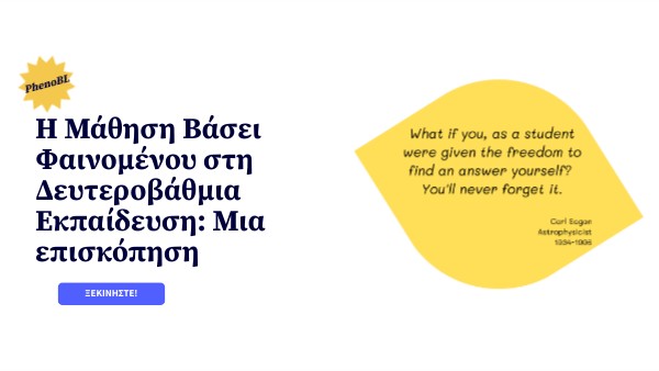 - Ορίζετε τη Μάθηση Βάσει Φαινομένου (Phenomenon-Based Learning) -PhenoBL .