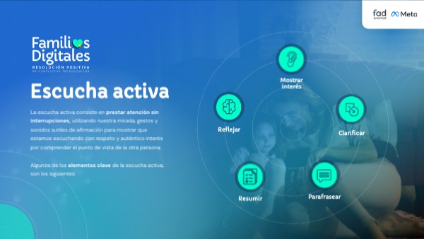 La escucha activa consiste en prestar atención sin interrupciones, utilizando nuestra mirada, gestos y sonidos sutiles de afirmación para mostrar que estamos escuchando con respeto y auténtico interés por comprender el punto de vista de la otra persona.