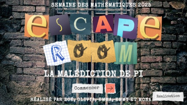 Scénario:Un ancien manuscrit et un coffre ont été découverts dans la bibliothèque du collège. En l'ouvrant, la malédiction est lancée ! Si personne ne trouve le code du coffre contenant le contre maléfice, les cercles disparaîtront à jamais du monde et le nombre π sera oublié pour toujours ! 😱 Archimède, rédacteur du manuscrit et génie des mathématiques, a laissé une série d’énigmes pour tester les plus brillants esprits. Votre mission : résoudre ses énigmes avant que le temps ne s’écoule et sauver le nombre π !