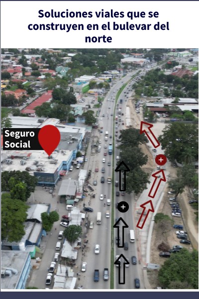 Con la nueva solución vial, los carros que van para Puerto Cortés al pasar por el Seguro Social, harán un pequeño desvío hacia donde estarán los nuevos carriles del bulevar.