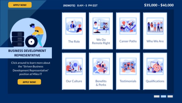 Click around to learn more about the "Striven Business Development Representative" position at Miles IT