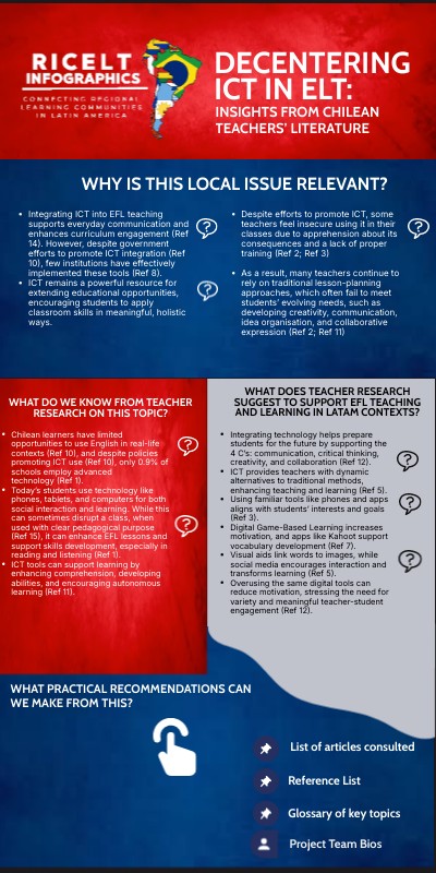 - Chilean learners have limited opportunities to use English in real-life contexts (Ref 10), and despite policies promoting ICT use (Ref 10), only 0.9% of schools employ advanced technology (Ref 1).