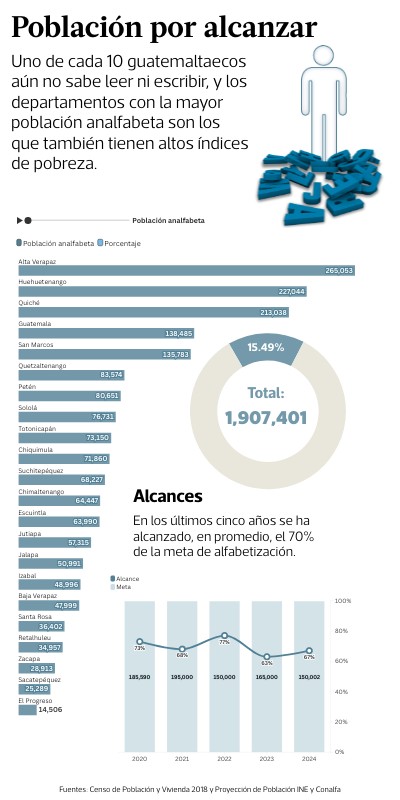 Uno de cada 10 guatemaltaecos aún no sabe leer ni escribir, y los departamentos con la mayor población analfabeta son los que también tienen altos índices de pobreza.
