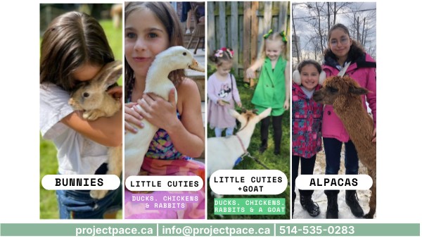 We bring 2 ducks, 2 chickens, 2 bunnies and 1 goat!