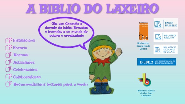Ola, son Gromiño o duende da biblio. Benvidas e benvidos a un mundo de lectura e creatividade