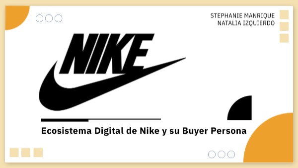 Nike es una marca que se ha destacado mundialmente y ha logrado tener una presencia clave en el mundo digital, lo que ha permitido que pueda expandir su mercado. En esta presentación se podrá evidenciar su ecosistema digital y el perfil de su cliente ideal.