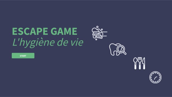 Bienvenue, agents de la santé ! Un mystérieux virus nommé "Mauvaise habitude" s'est infiltré dans notre quotidien et perturbe notre équilibre de vie. Résultat ? Fatigue, manque d'énergie, désordre alimentaire et hygiène oubliée ! Votre mission : réparer les erreurs, retrouver les bonnes habitudes et rétablir l'hygiène de vie avant qu'il ne soit trop tard ! De nombreuses énigmes sont cachées dans la pièce, récupérer tous les indices et trouver la clé qui vous permettra de sortir avec toutes les connaissances nécessaires pour une vie plus saine. Bonne chance !