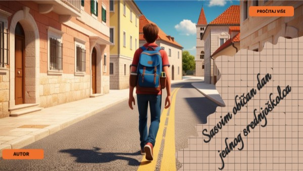 Dobrodošli u interaktivnu priču o Davidu, srednjoškolcu koji se suočava s raznim izazovima u školi i privatnom životu. Priča omogućava istraživanje njegovih misli i odluka. Istraživanjem interaktivnih elemenata saznajte Davidovu priču!