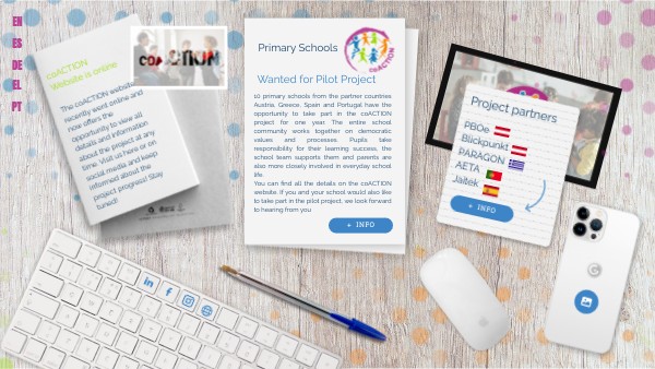 10 δημοτικά σχολεία από τις χώρες-εταίρους Αυστρία, Ελλάδα, Ισπανία και Πορτογαλία έχουν την ευκαιρία να συμμετάσχουν στο πρόγραμμα coACTION για ένα έτος. Ολόκληρη η σχολική κοινότητα εργάζεται από κοινού πάνω σε δημοκρατικές αξίες και διαδικασίες. Οι μαθητές αναλαμβάνουν την ευθύνη για τη μαθησιακή τους επιτυχία, η σχολική ομάδα τους υποστηρίζει και οι γονείς συμμετέχουν, επίσης, πιο στενά στην καθημερινή σχολική ζωή. Αν εσείς και το σχολείο σας θα θέλατε να συμμετάσχετε στο πιλοτικό πρόγραμμα, περιμένουμε να σας ακούσουμε!