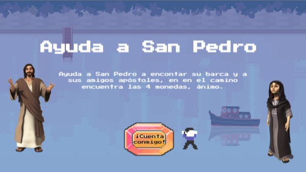 Ayuda a San Pedro a encontar su barca y a sus amigos apóstoles, en en el camino encuentra las 4 monedas, ánimo.