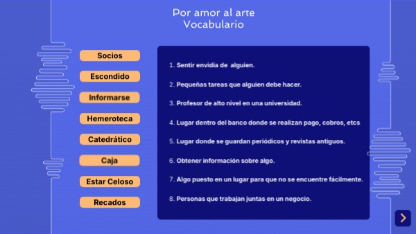 Por amor al arte Vocabulario