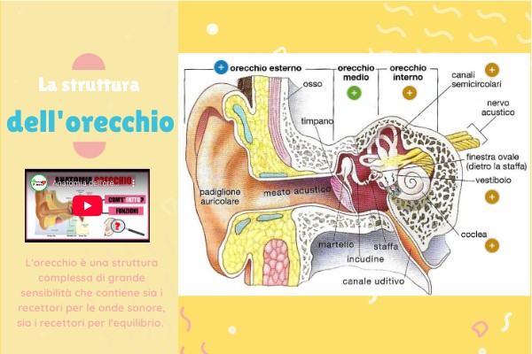 L'orecchio è una struttura complessa di grande sensibilità che contiene sia i recettori per le onde sonore, sia i recettori per l'equilibrio.
