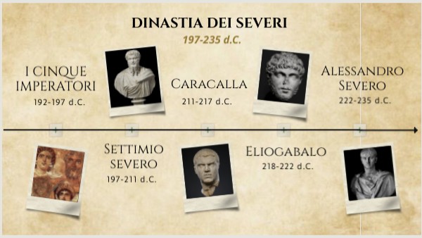 - Settimio Severo, Clodio Albino e Pescennio Nigro combattono due guerre civili (entrembe vinte da Settimio) per ottenere il potere imperiale