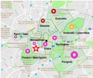 Es una de los barrios más antiiguos .Ubucado en el carazón de Atenas . Es famoso por su ambiente animado,diversas opciones de comida y bebida y espíritu artístico.