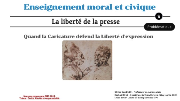 Objectifs de la séquence : - Comprendre le rôle de la caricature comme moyen d'expression et de critique. - Analyser la relation entre caricature et liberté d'expression. - Identifier les enjeux et les limites de la caricature dans une société démocratique. - Développer l'esprit critique et la capacité à interpréter des images.
