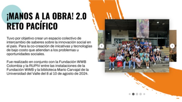 Tuvo por objetivo crear un espacio colectivo de intercambio de saberes sobre la innovación social en el país. Para la co-creación de inicativas y tecnologías de bajo costo que atiendan a los problemas u oportunidades sociales. Fue realizado en conjunto con la Fundación WWB Colombia y la RUPIV entre las instalaciones de la Fundación WWB y la biblioteca Mario Carvajal de la Universidad del Valle del 8 al 10 de agosto de 2024.