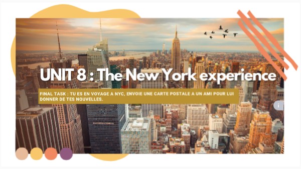 1- Write down three sentences about your plans in NYC using Be Going To. 2- Ask your partner questions to guess their plans. 3- Share what you discovered with the class.