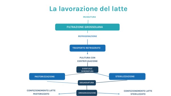 Il latte viene portato ad una temperatura di 75-85°C per 20/30 secondi e raffreddato a 3-4°C. Vengono così eliminati tutti ii germi portatori di malattie, questo òlatte deve essere conservato in frigorifero e per pochi giorni.