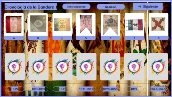 Arrastra las banderas al lugar correcto de la línea cronológica (Para una mejor visualización, haz clic sobre la bandera para ampliar la imagen.)