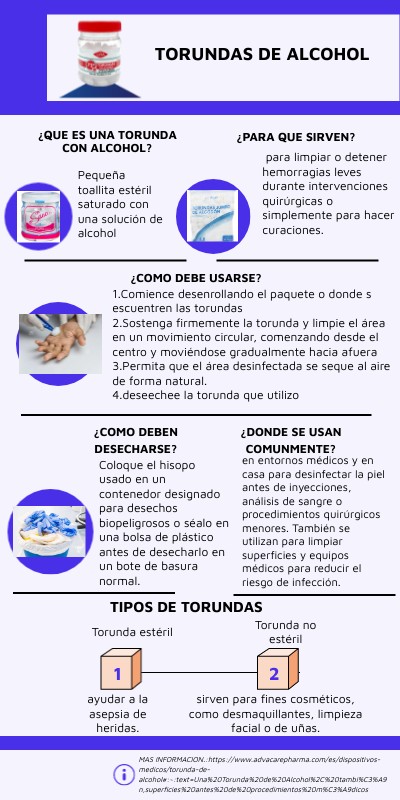 MAS INFORMACION.:https://www.advacarepharma.com/es/dispositivos-medicos/torunda-de-alcohol#:~:text=Una%20Torunda%20de%20Alcohol%2C%20tambi%C3%A9n,superficies%20antes%20de%20procedimientos%20m%C3%A9dicos